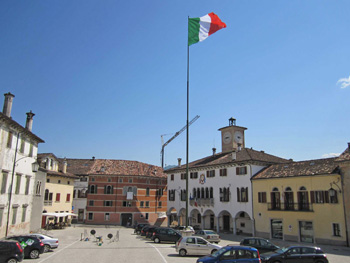 In die am linken Piaveufer gelegene Ortschaft Mel gelangt man über die SP1; nach der Ortseinfahrt biegt man Richtung Zentrum ab (Via Tempietto/Borgo Garibaldi) und fährt in die Altstadt hinauf.