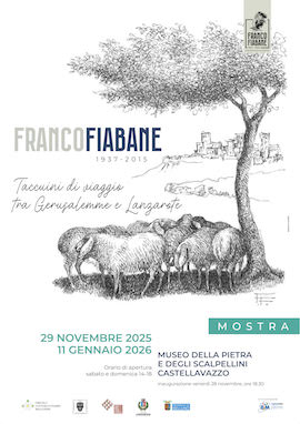 | L'esposizione presenta per la prima volta esposti, 56 disegni, parte di due taccuini di viaggio dedicati a Gerusalemme, la città santa, e a Lanzarote, isola vulcanica dai paesaggi lunari, luoghi visitati nel 1995 e nel 1996 da Franco Fiabane accompagnato dalla moglie Maria e da alcuni amici. La mostra illustra un lato inedito dello scultore, in un luogo, Castellavazzo, strettamente legato alla sua esperienza di scalpellino divenuto artista. L'evento è realizzato grazie alla preziosa disponibilità della famiglia Fiabane. |